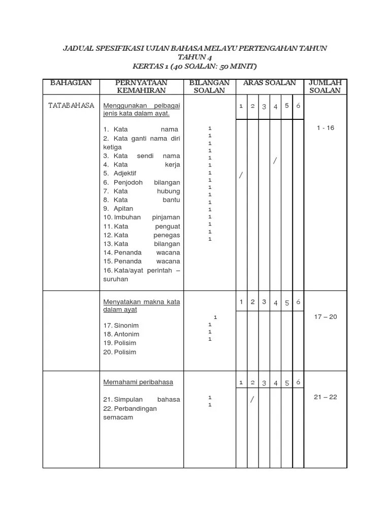 Post a Comment for "Jsu Bahasa Melayu Tingkatan 5 - Jadual Spesifikasi Ujian Kump 2 Pengajaran Teknologi Dan Penaksiran 1 Kpd 3016 Disediakan Studocu"